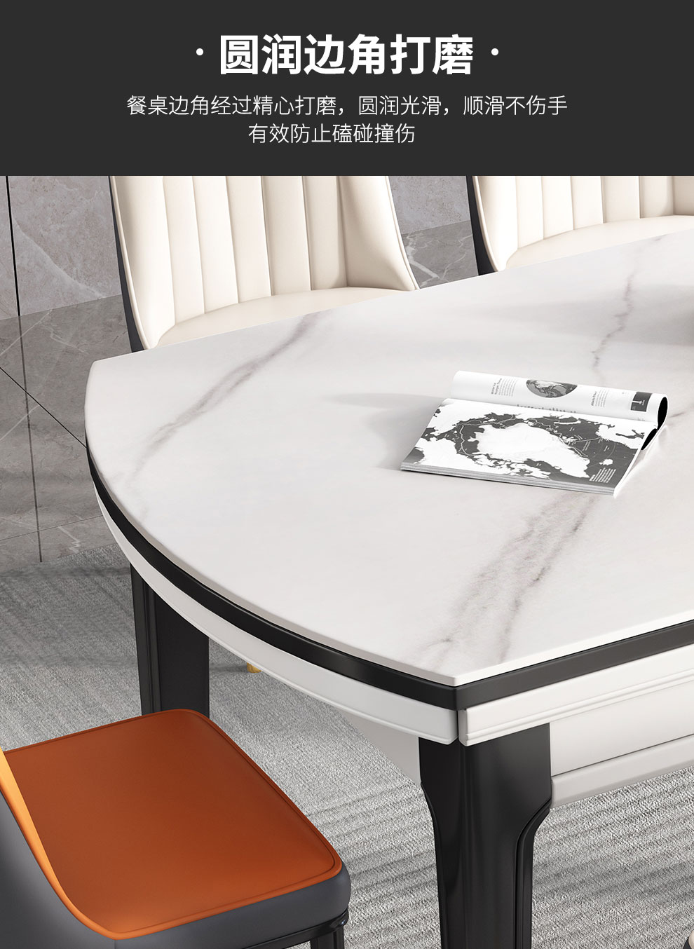 莫美尼 实木餐桌 岩板ダイニング テーブルとチェア组合可伸缩折叠现代简约意式轻奢长方形圆形吃饭桌子套装 餐厅家具 哑光桌面款(1.35米) 一桌6椅【图片 价格 品牌 报价】-