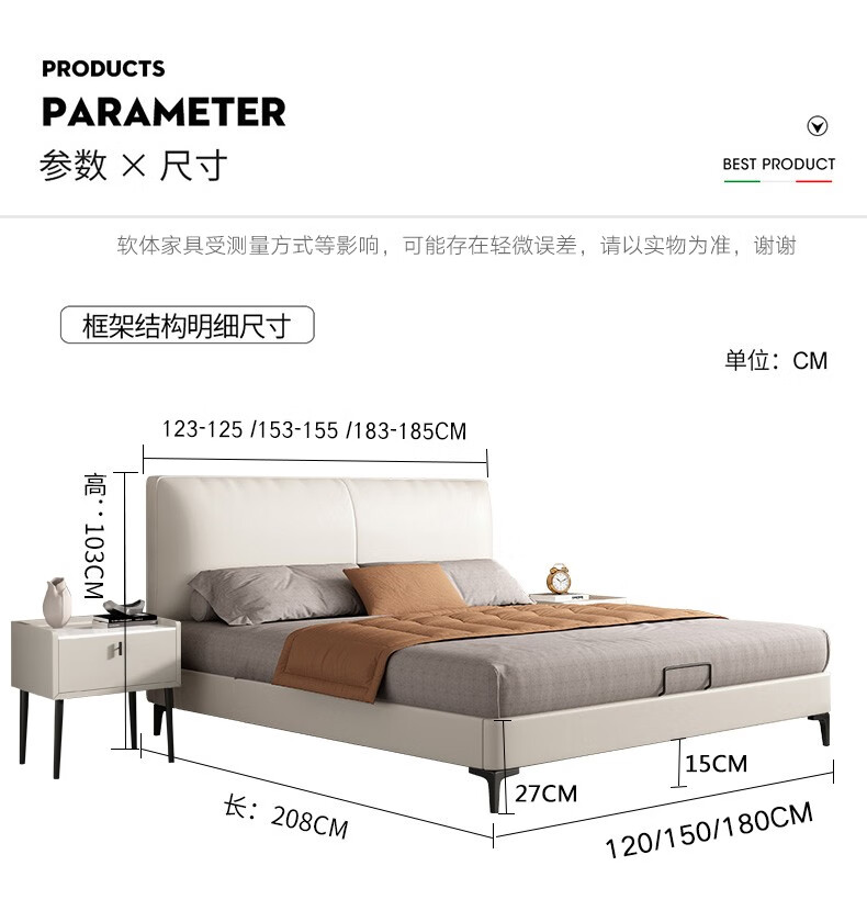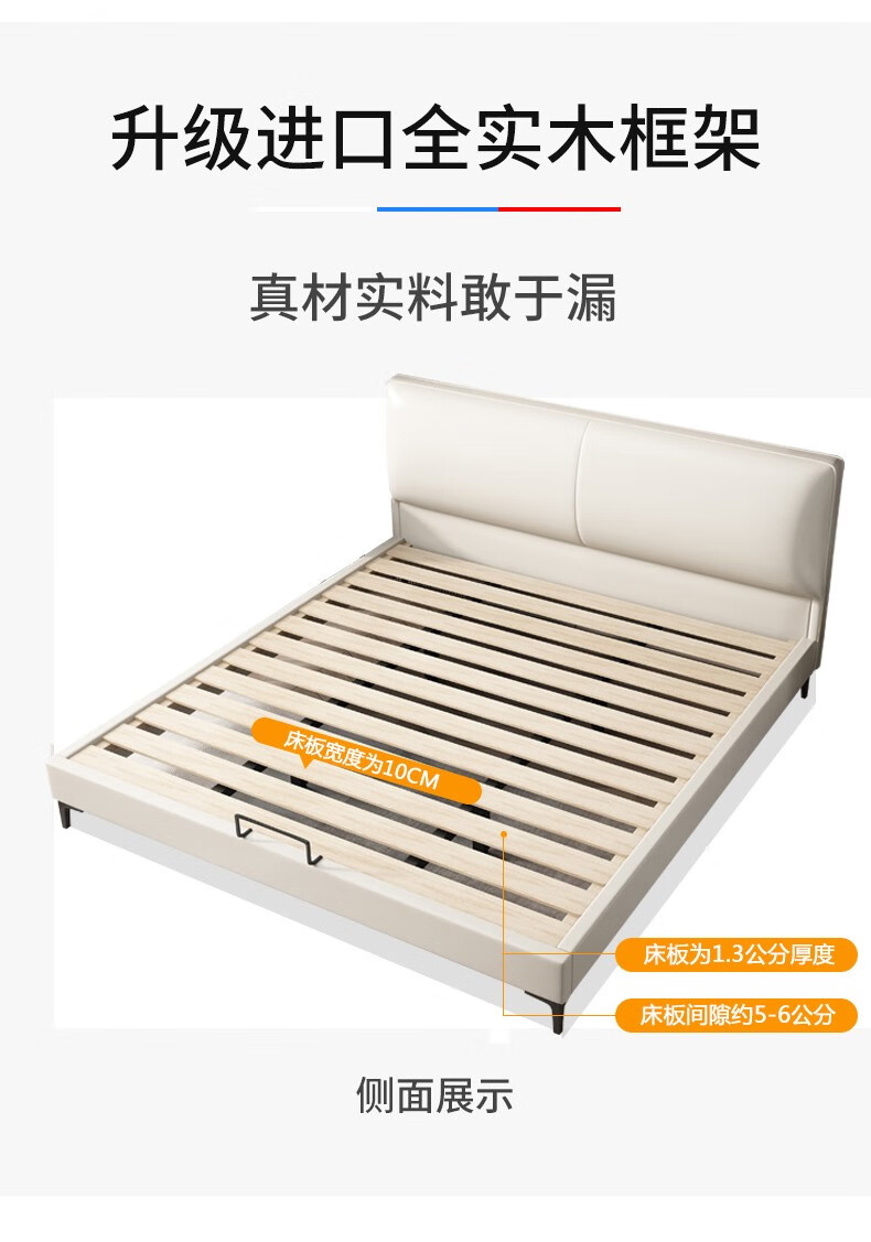 佐麗雅真皮ベトソフトベドペアベド婚ベッド現代簡単ベドホーム家具シングルベド+2箱+9パーティションラテックスプラス綿マット1800*2000フレームベトド