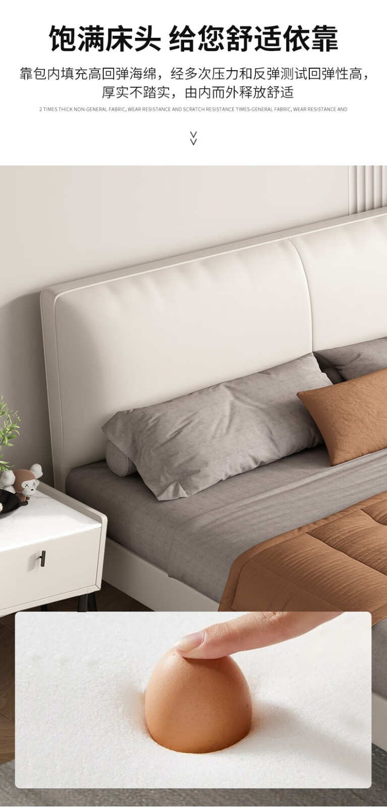 忆人忆慧 科技布艺ベッド仿皮ベッド1.5现代简约主卧室2022新款婚ベッド1.8米双人ベッド奶油风大ベッド轻奢科技实木ベッド 米白色【裸ベッド】 1500*2000mm【图片 价格 品牌 报价】-